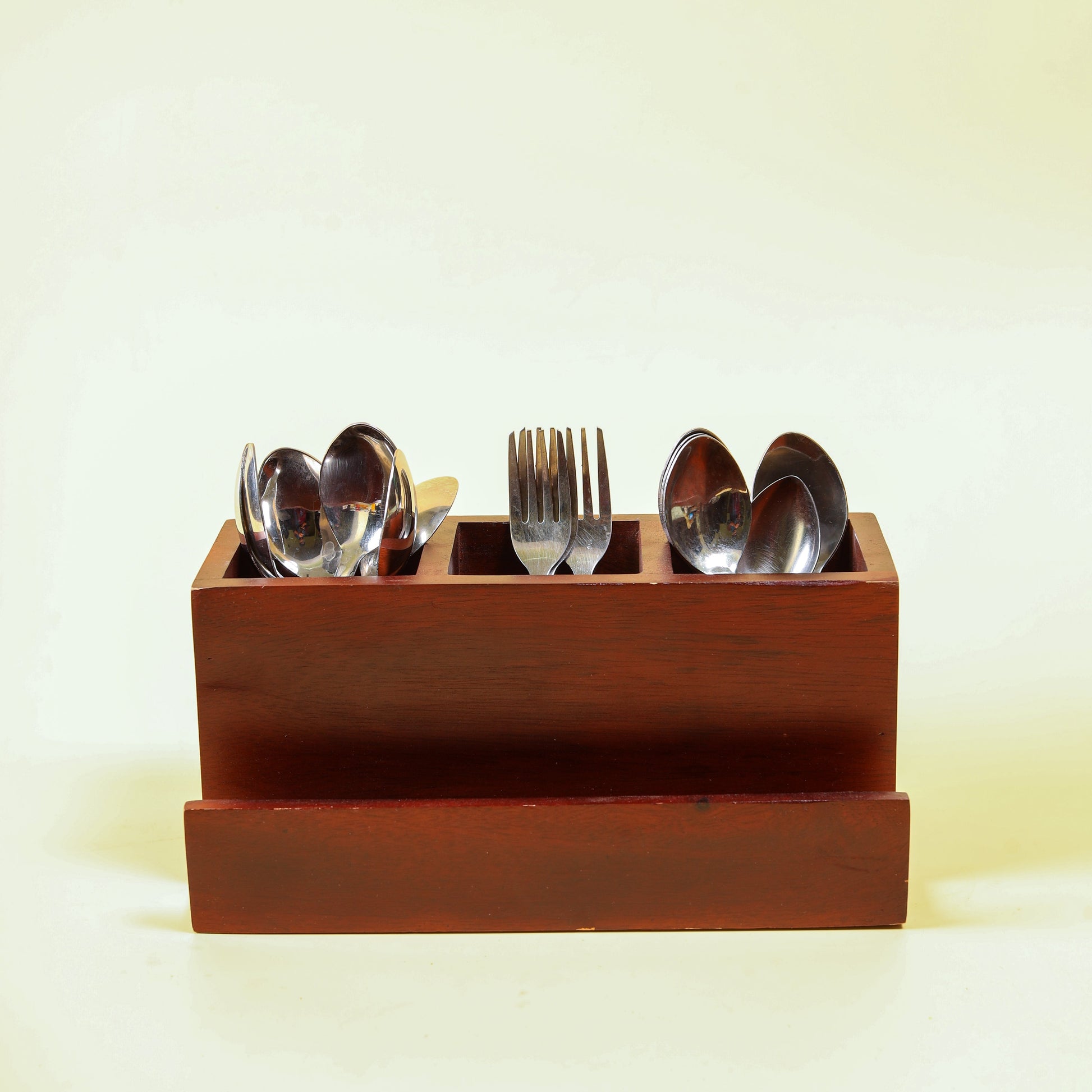 The divided compartments allow easy sorting and quick access to utensils, making it ideal for kitchen counters, dining tables, restaurants, and cafés. The warm wooden finish adds a rustic charm that complements modern, farmhouse, or traditional kitchen décor.